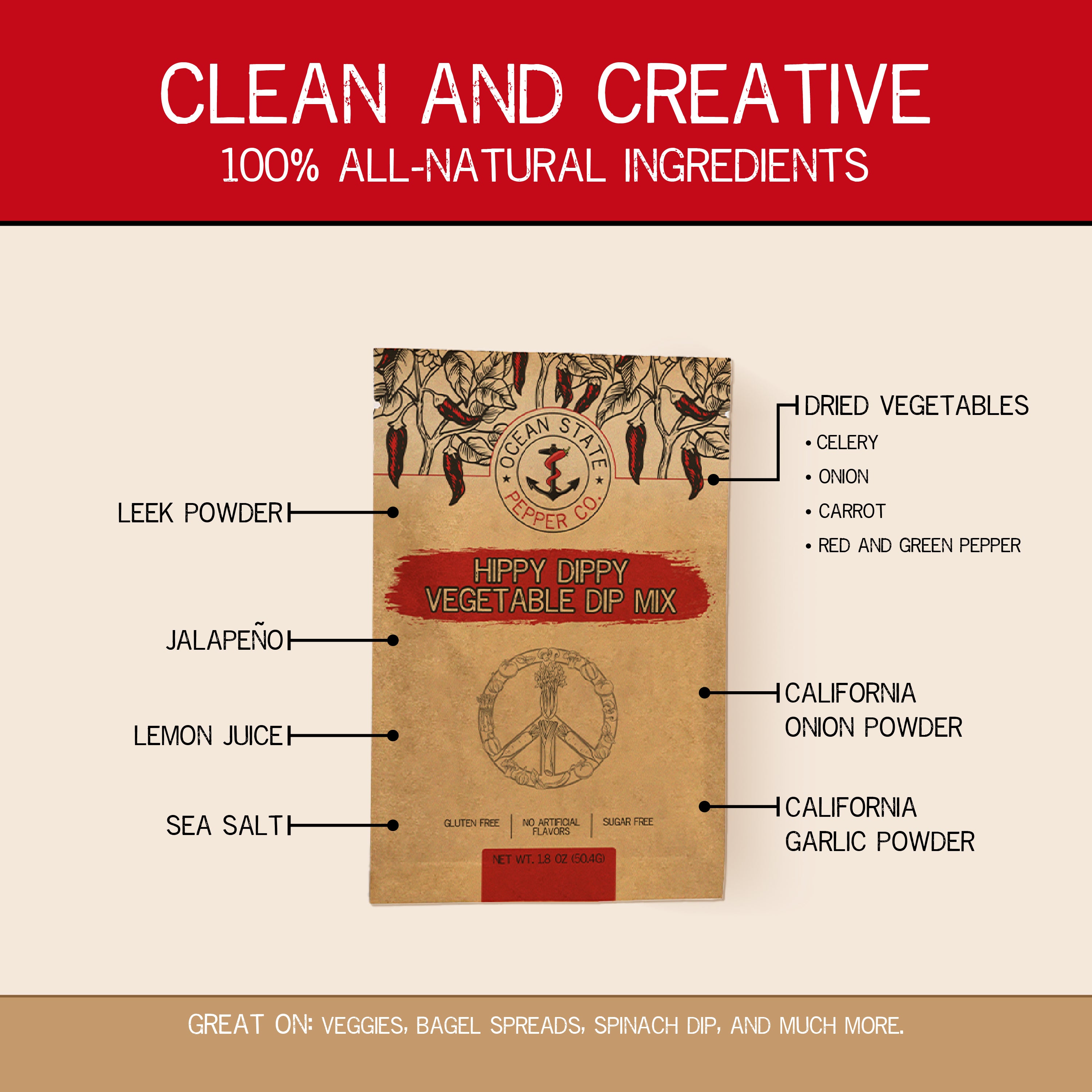 Veggies deserve better than a dip full of mystery ingredients. Hippy Dippy brings the flavor without the weird stuff — just a blend of real dehydrated vegetables and seasonings you can actually pronounce. It’s bright, savory, and seriously satisfying.