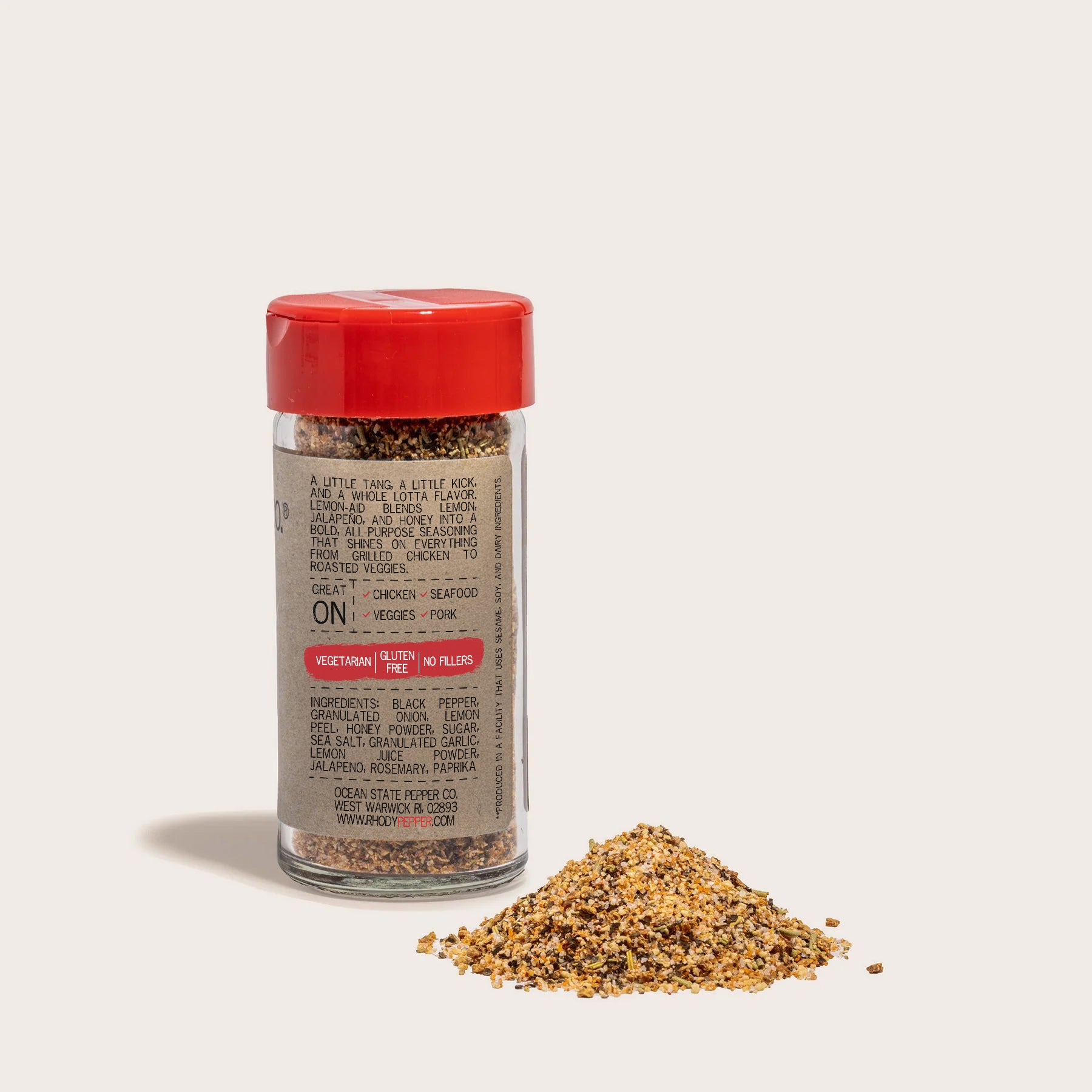 You asked for it! OSPC does lemon pepper with an extra added kick from Jalapeno peppers, because flavor is life. This all-purpose blend begs to be sprinkled atop grilled seafood, chicken, pork chops, and vegetables. A little heat...a little sweet, but 100% great flavor. Treat this one as the 'grab-and-go' blend that can work on anything. We even make pasta salads, dressings, and dips with ease using this bad boy.