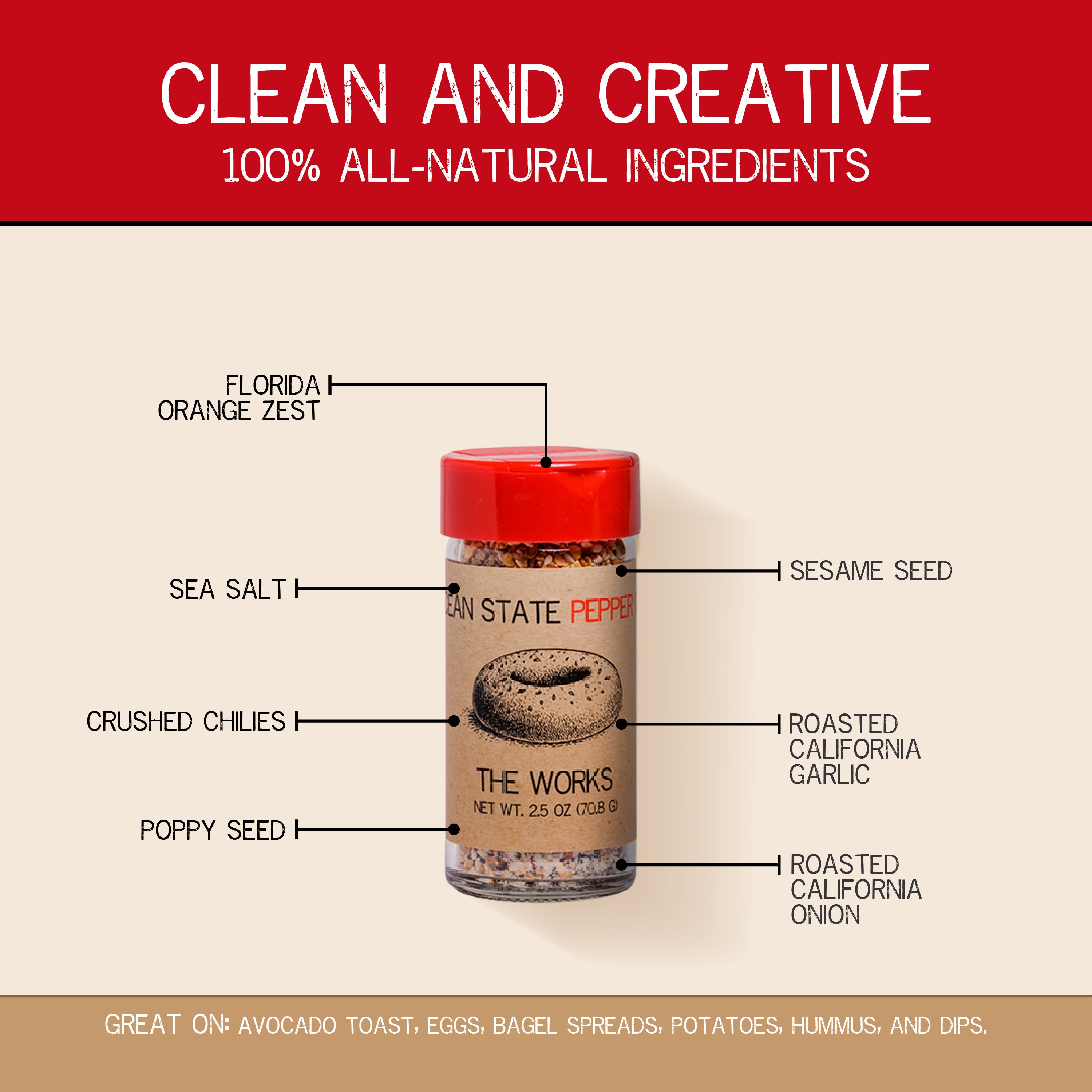 Our everything bagel seasoning has been made to capture that classic bagel taste and aroma. Carefully crafted to bring out that freshly roasted flavor, this savory blend features sesame and poppy seeds along with toasty onions and garlic, and an added kick of chilies and zesty citrus, making it perfect for adding a unique flavor to your favorite dishes. Bright, savory, and with a touch of heat, this blend may be our new favorite...and hopefully yours as well.